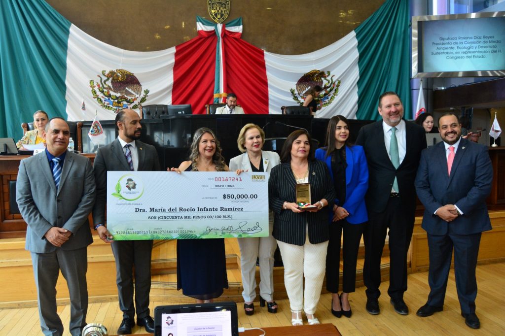 María del Rocío Infante Ramírez, recibió el “Premio a la Responsabilidad Medioambiental” que entregan los tres poderes estatales, en la categoría dedicada a personas con trayectoria o acciones destacadas en el ámbito medio ambiental.