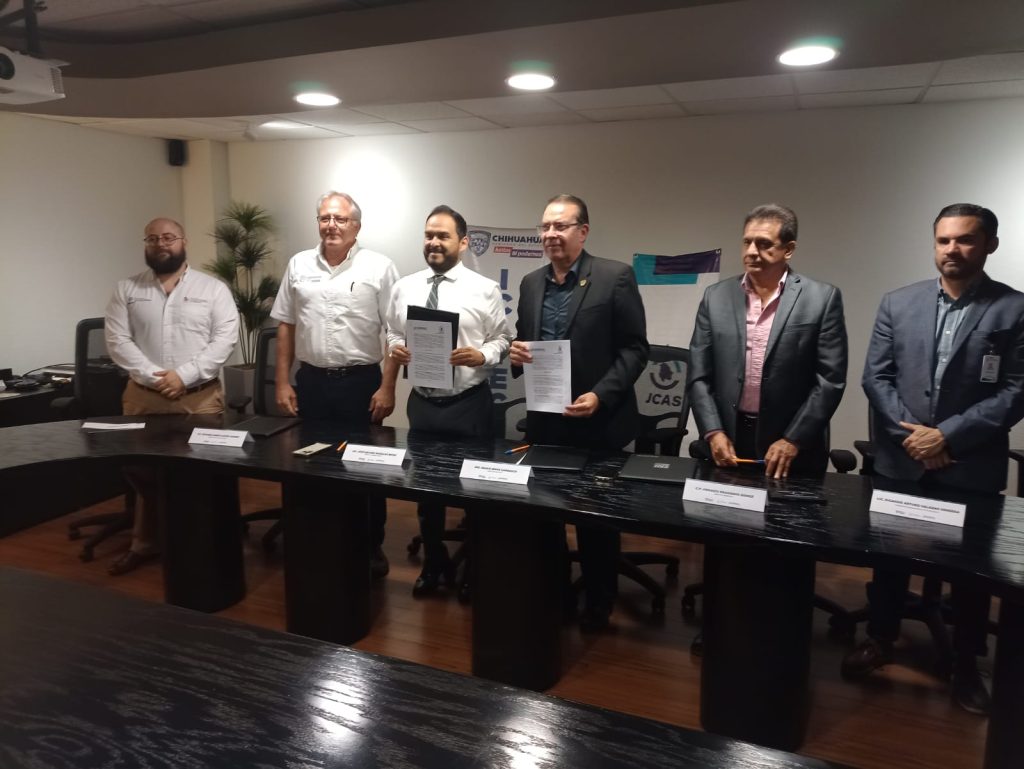 Hoy se firmó un convenio de colaboración entre la Junta Central de Agua y Saneamiento (JCAS) y el Instituto de Capacitación de Chihuahua (Icatech), a fin de que la planta laboral de este organismo descentralizado pueda acceder a servicios de capacitación.