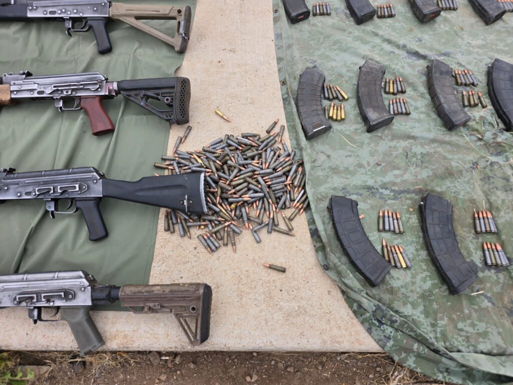Como parte del proceso por asegurar se contabilizaron siete armas largas tipo fusil de distintos calibres, 40 porciones de polvo blanco con las características propias de la cocaína, más de 1,200 cartuchos útiles, 31 cargadores, un vehículo Jeep Liberty modelo 2002, así como chalecos y fornituras balísticas, enlistaron en el reporte.