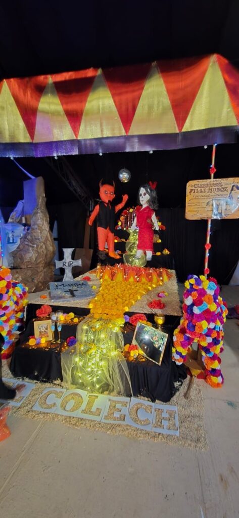 Con el tema de la leyenda del famoso salón de baile “El Carrusel”, el Colegio de Chihuahua participó en “Raíces y Recuerdos, Panteón de las Ánimas”, organizado por el Gobierno del Estado, agrega el boletín.