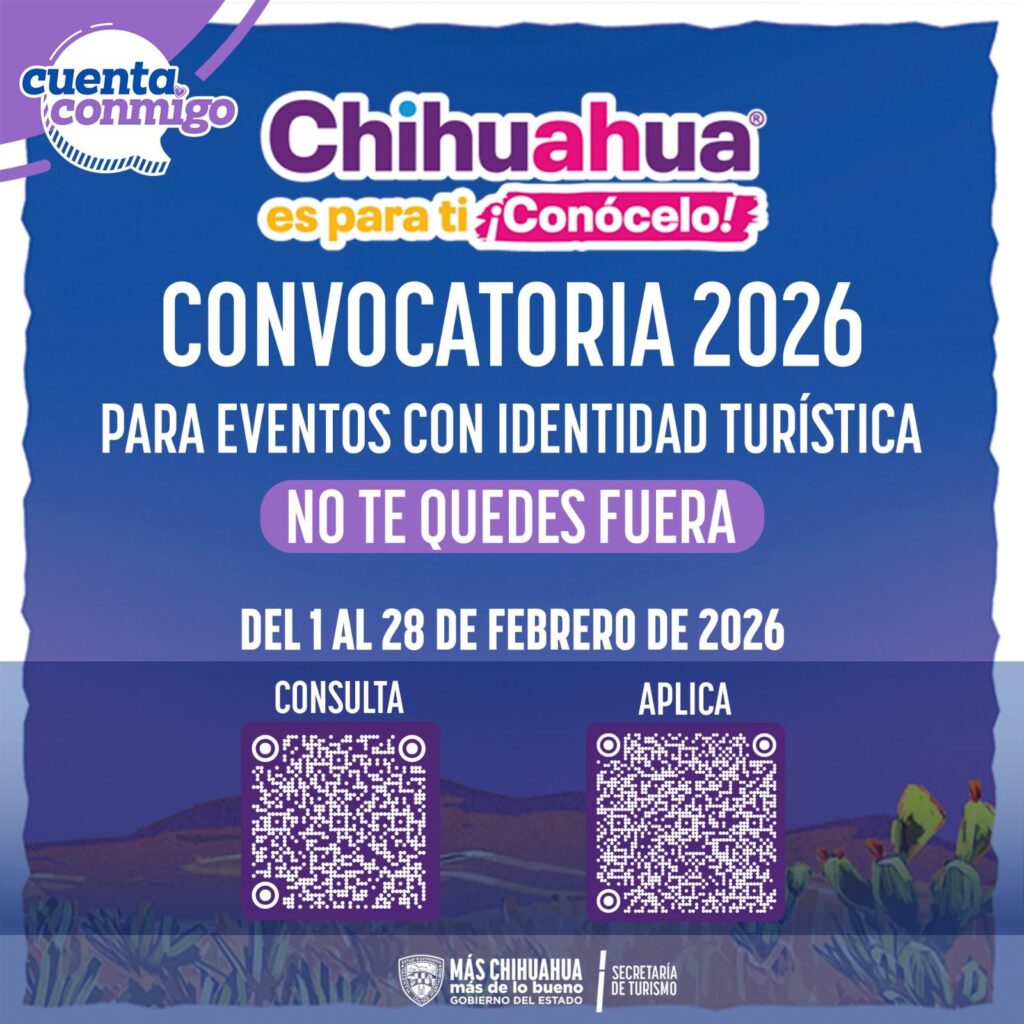 El Gobierno del Estado de Chihuahua, a través de la Secretaría de Turismo, dio inicio este domingo 1 de febrero a la convocatoria del programa “Chihuahua es Para Ti ¡Conócelo!” en su edición 2026, una iniciativa destinada a impulsar eventos con identidad turística que promuevan los destinos del estado y generen derrama económica en los municipios.