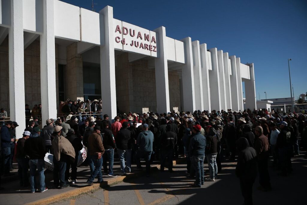 “Venden los trámites, es una cochinada”, señaló el activista frente a decenas de productores que se apostaron, primero frente al edificio de la Aduana en El Chamizal, y después en el acceso a los carriles de carga del Puente Zaragoza.