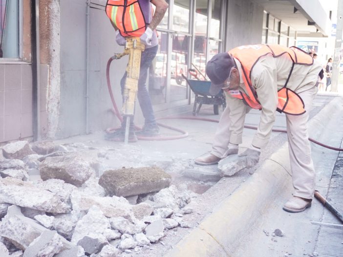 Como parte de los trabajos de remodelación del Centro Histórico, se dio inicio con la segunda etapa de demolición de banquetas sobre la avenida Juárez.