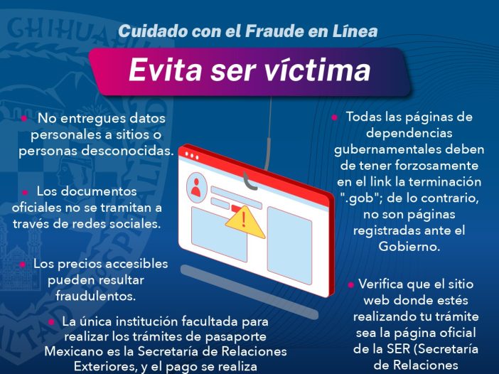 Ante el aumento de sitios web fraudulentos que prometen ayudar en el trámite del pasaporte mexicano, la Unidad de Policía Cibernética de la SSPE emitió una alerta ante el riesgo potencial para la seguridad y privacidad de los usuarios que estos sitios representan.