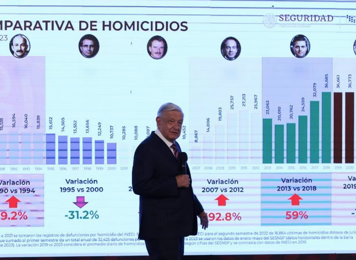 En su conferencia mañanera de este miércoles en Palacio Nacional, el presidente López Obrador reconoció que su gobierno es el que más homicidios ha registrado “porque, pues estaba muy alto el número de homicidios cuando llegamos, y lo hemos ido bajando”.