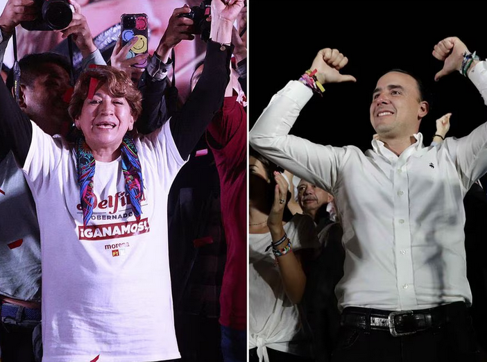 El presidente Andrés Manuel López Obrador celebró los resultados electorales de este domingo 4 de junio en Estado de México y Coahuila, y felicitó a los virtuales ganadores, Delfina Gómez, de Morena, y Manolo Jiménez, de PRI-PAN-PRD, con quienes, dijo, trabajará sin sesgos partidistas.