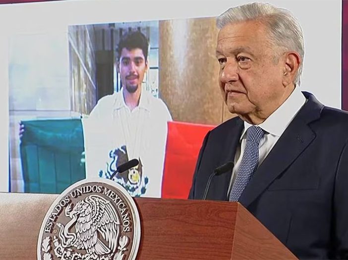 “También felicitamos a Rogelio Guerrero, joven de 17 años, originario de Aguascalientes, ganó la medalla de oro en la Olimpiada Internacional de Matemáticas, realizada en Japón el pasado 11 de julio de 2023”.