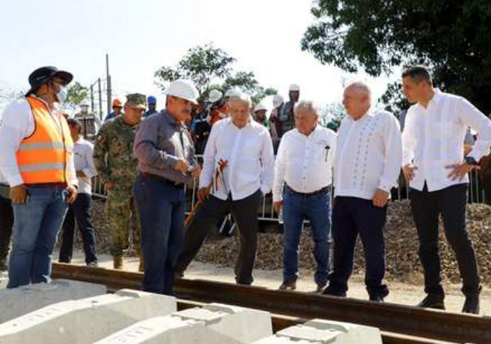 El presidente Andrés Manuel López Obrador encabeza la supervisión de las obras de construcción del Tren Interoceánico del Istmo de Tehuantepec.