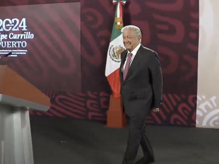 López Obrador inició su conferencia mañanera de este lunes 3 de junio en Palacio Nacional mostrando su felicidad: “¡Ánimo, sí, sí, estoy muy contento, confieso que estoy muy contento, y estoy muy orgulloso por la actitud de nuestro pueblo, la forma en que los mexicanos nos manifestamos y hacemos valer nuestras libertades y reafirmamos nuestra vocación democrática”.