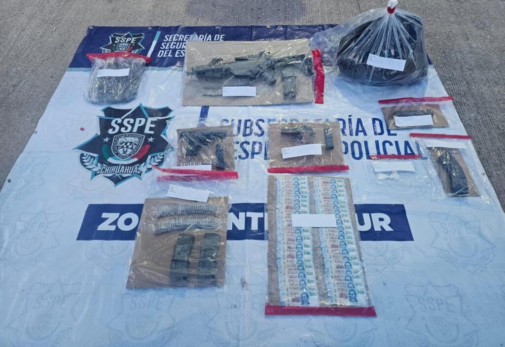 La Policía de Despliegue de la Secretaría de Seguridad Pública del Estado (SSPE) llevó a cabo el arresto de un sujeto en el municipio de Ojinaga, identificado como Eduardo Arath L. L., a quien se le aseguraron armas de fuego, equipo táctico y presunta droga.