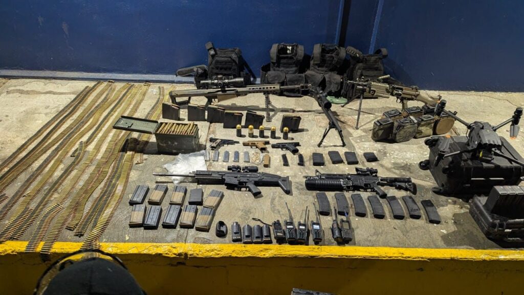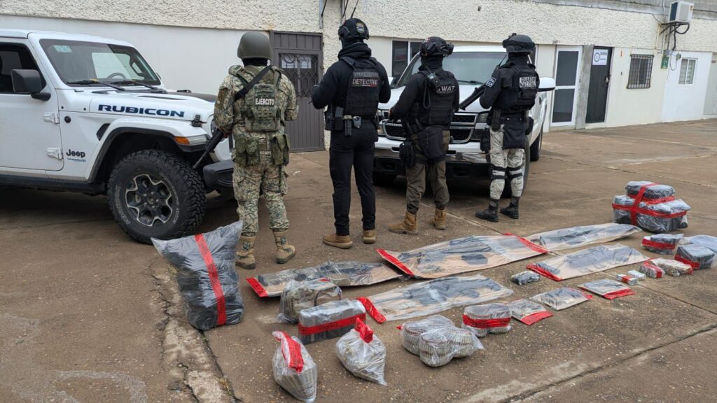 Asimismo, los sujetos portaban cuatro granadas, un dron con seis baterías, cuatro piezas de equipo táctico con placas balísticas, radios de comunicación, 186 dosis de presunta cocaína y un total de un millón 100 mil pesos en efectivo, se informó.