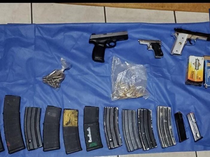 Las armas aseguradas son tres tipo pistola y un arma larga, además de los cargadores, los cartuchos, así como dos envoltorios de hule transparente que contiene sustancia cristalina y granulosa con las características de la droga denominada “cristal”, con un peso de 14.9 gr.