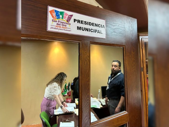 La Fiscalía Anticorrupción del Estado de Chihuahua cumplimentó una orden de cateo emitida por la autoridad judicial, en las instalaciones de la Presidencia Municipal de San Francisco del Oro.