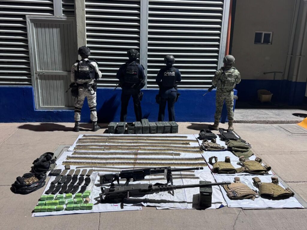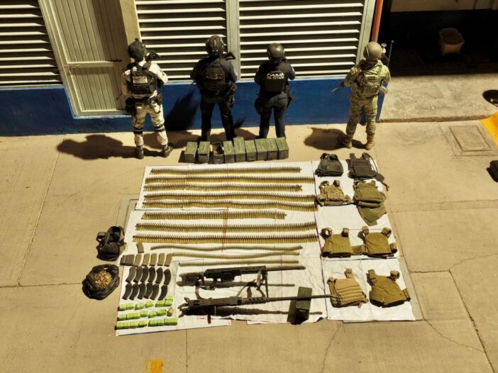 Elementos de la Secretaría de Seguridad Pública del Estado (SSPE), en coordinación con la Secretaría de la Defensa Nacional (Defensa) y Guardia Nacional, aseguraron de armamento de grueso calibre, municiones y un vehículo con reporte de robo en la región de Coyame del Sotol.