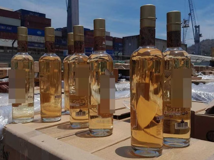 En el puerto de Manzanillo, Colima, elementos de la Secretaría de Marina (Semar) en coordinación con la Aduana, aseguraron aproximadamente ocho mil 640 kilogramos de metanfetamina, contenidos en botellas de tequila.