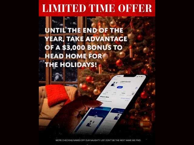 “Durante la temporada navideña, el contribuyente estadounidense está triplicando generosamente el incentivo para salir voluntariamente, ofreciendo un bono de salida de tres mil dólares, pero solo hasta finales de este año”, declaró Noem en un comunicado oficial.