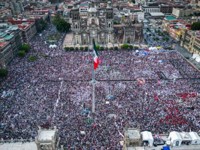 Las corcholatas, ya empapadas, aplaudieron cuando ya la noche caía y la lluvia arreciaba en el Zócalo, que para esos últimos minutos del largo discurso empezaba a vaciarse.