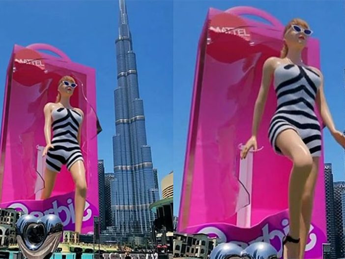 En Dubái, junto al famoso edificio Burj Khalifa, una Barbie colosal se apoderó de la atención de los transeúntes. La publicidad fue captada en un video por los fans del juguete y llegó hasta redes sociales.