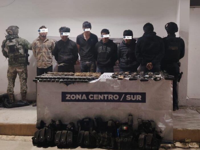 GUACHOCHI, Chih.- Elementos de la Secretaría de Seguridad Pública Estatal (SSPE), en coordinación con el Ejército Mexicano, detuvieron a seis personas fuertemente armadas, entre ellas Fernando C. S., alias “El Larry”, señalado como jefe de plaza de un grupo criminal que opera en la zona serrana.