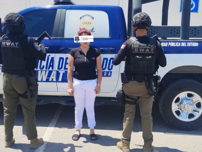 Una mujer fue detenida con 125 porciones de presunta droga conocida como cristal, en calles de la colonia Las Galeras Etapa III, de la ciudad de Chihuahua, por elementos de la Fuerza Especial SWAT de la Secretaría de Seguridad Pública (SSPE).