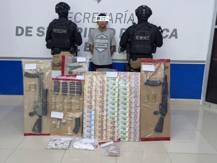 El detenido, junto con las armas, la droga y el dinero, fue trasladado a Ciudad Juárez y puesto a disposición de la Fiscalía General de la República (FGR).