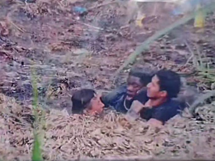 Afuera de las aguas, los migrantes que grabaron el momento gritan y lloran, pues notan que dos de los hombres no salen del fango. Según versiones de los testigos, una de las mujeres que se escucha en el video era familiar de uno de las víctimas.