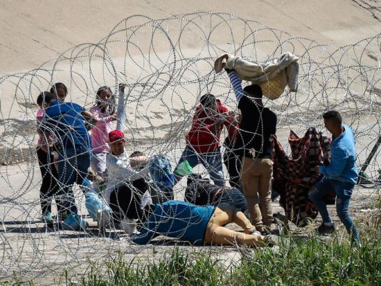 Extranjeros se escabullen corriendo para cruzar a lado americano y aunque la GN de Texas los rechaza, se internan hasta por debajo de los alambres de navajas