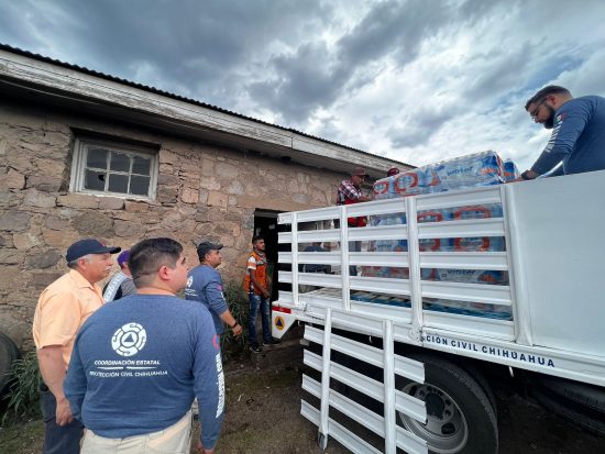 La Coordinación Estatal de Protección Civil trasladó a la sierra más de 5 mil botellas de agua, víveres, herramientas e insumos