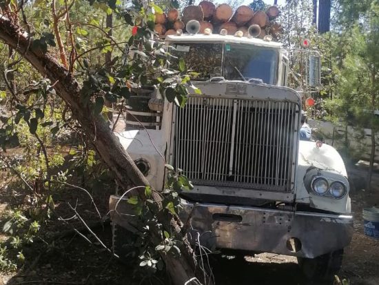 En acción conjunta de fuerzas federales y estatales caen cinco sujetos en flagrancia; les aseguran cuatro vehículos y la madera recién cortada