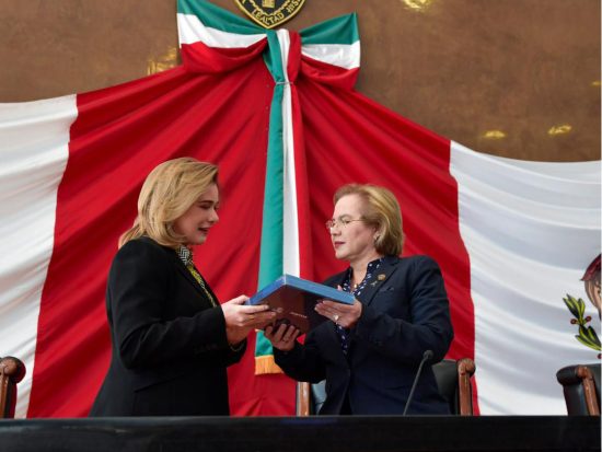 En presencia de Maru Campos, bancadas de oposición se manifiestan con pancartas en contra de la administración estatal