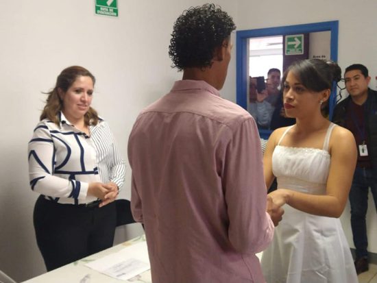 Seis parejas contrajeron matrimonio civil este mediodía para formalizar su relación y, en su caso, realizar el trámite de refugio como pareja ante EU