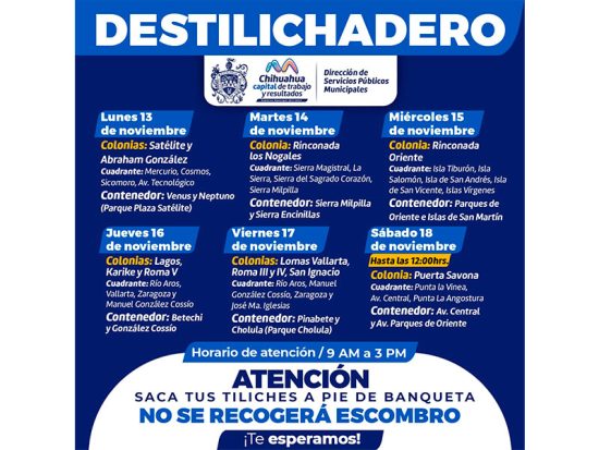 Destilichadero visitará 12 colonias del 13 al 18 de noviembre