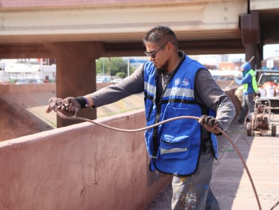 Se colocaron 342 litros de pintura en más de mil 600 metros cuadrados de esa vialidad