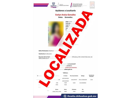 Desapareció el pasado 19 de enero y finalmente fue localizada en el estado de Nuevo León