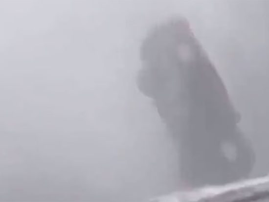 Un conductor captó el momento en que un tornado eleva por los aires al vehículo de enfrente, lanzándolo contra otro mientras transitaba por una autopista