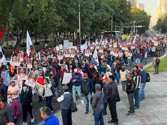 “Justicia para las y los electricistas del SME y para los usuarios de energía, victimas del narcogobierno de Calderón”, dice una de las mantas