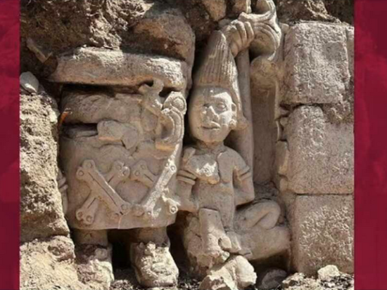Es parte de lo que se encontró en la parte superior de la principal estructura de la Acrópolis de Ek Balam