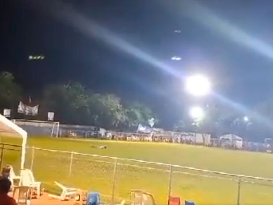 Una mujer ingresó al campo con un arma larga, se acercó a un grupo de hombres que estaban sentados viendo el partido y los atacó