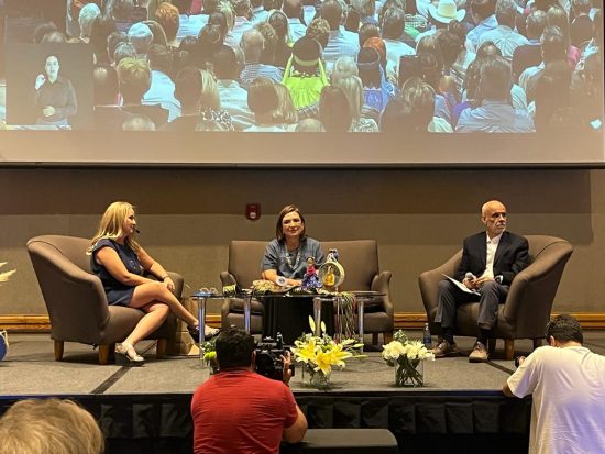 La aspirante a encabezar el Frente Amplio por México presentó su planteamiento estratégico para el país, en dialogó con la sociedad chihuahuense
