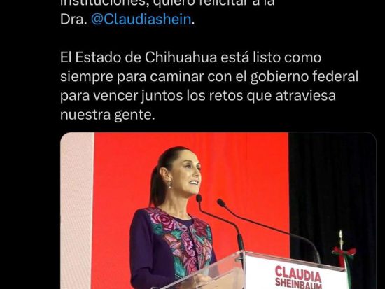 Felicita Gobernadora a Claudia Sheinbaum, “Chihuahua está listo”