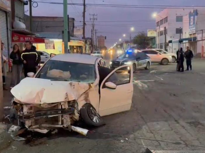 Por el fuerte impacto el vehículo se proyectó contra un poste de la Comisión Federal de Electricidad; los conductores de ambas unidades alegaron que tenían la luz en verde del semáforo.