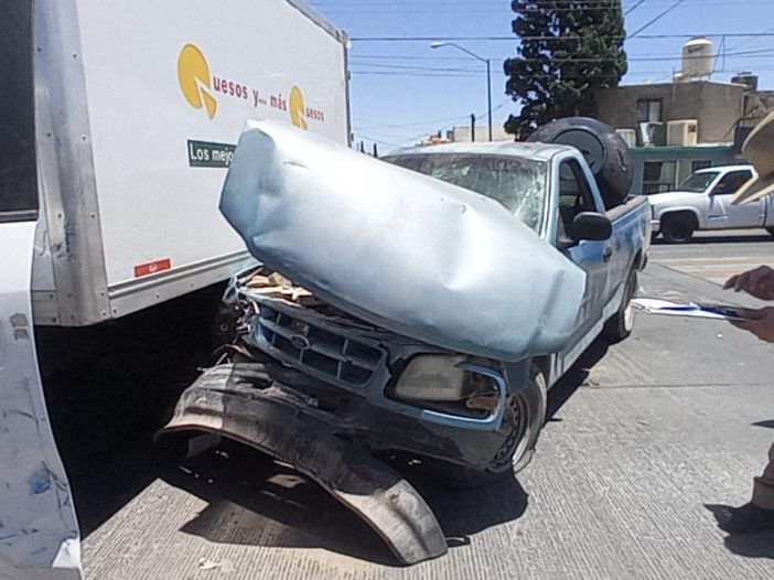 Una mujer resultó con un golpe en la frente, luego de impactar la pick up Ford que conducía, luego de impactarse contra un camión de reparto en el cruce de la avenida Vallarta y la calle Fresno.