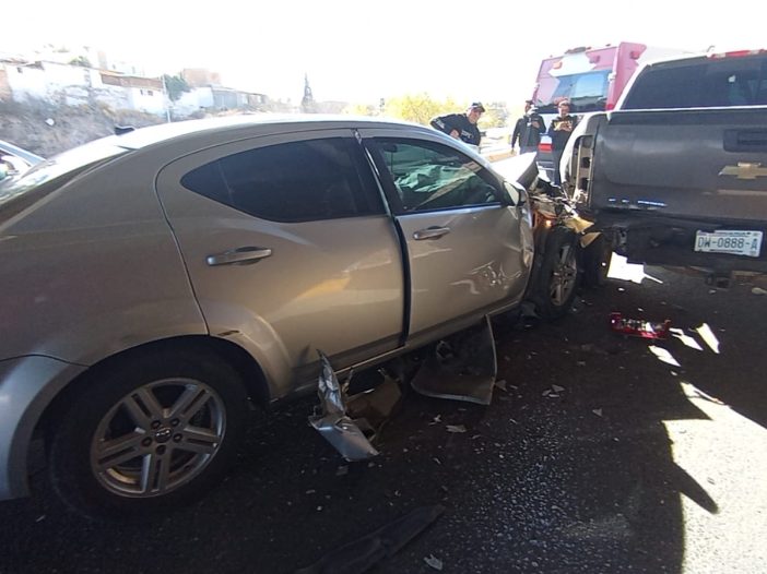 La conductora de un vehículo Dodge Avenger se impactó en la parte trasera a un conductor de una pick up Chevrolet Silverado.