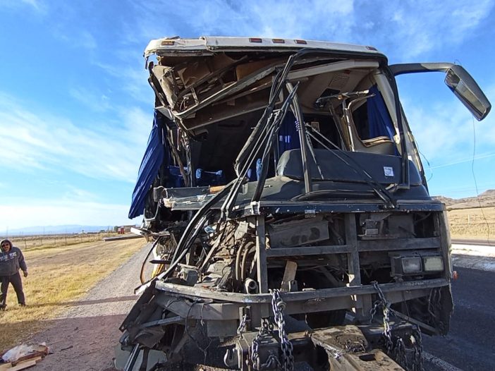 La colisión ocurrió cuando el mencionado camión impactó en la parte trasera de otro vehículo, cargado con 12 toneladas de leña de pino, provocando que este último volcara hacia su costado derecho debido a la fuerza del impacto.