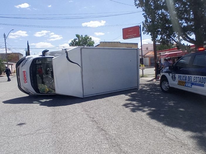 Daños materiales fue el saldo que dejó un aparatoso choque con volcadura en el cruce de las calles Ramírez y 52 en la colonia Cerro de la Cruz.