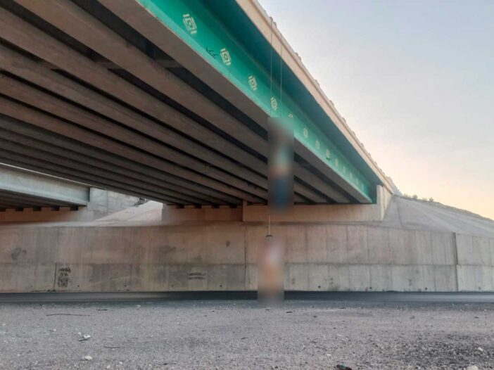 CIUDAD JUÁREZ, CHIH.-Dos hombres fueron localizados esta mañana colgados de un puente ubicado en el entronque que lleva a Santa Teresa, en la carretera Panamericana, a la altura de Samalayuca.