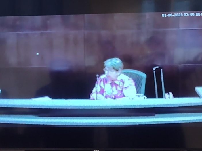 La juzgadora Delia Valentina Meléndez escuchó el alegato de la defensa, luego de un receso de dos horas, para retomar la audiencia a las 7:30 de la noche.