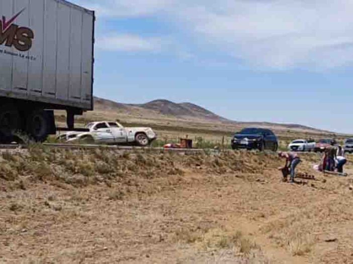 Una persona muerta y una más lesionada fue el saldo que dejó una aparatosa volcadura de una pickup Dodge Ram a la altura del kilómetro 121+300 de la carretera Chihuahua a Ciudad Juárez.