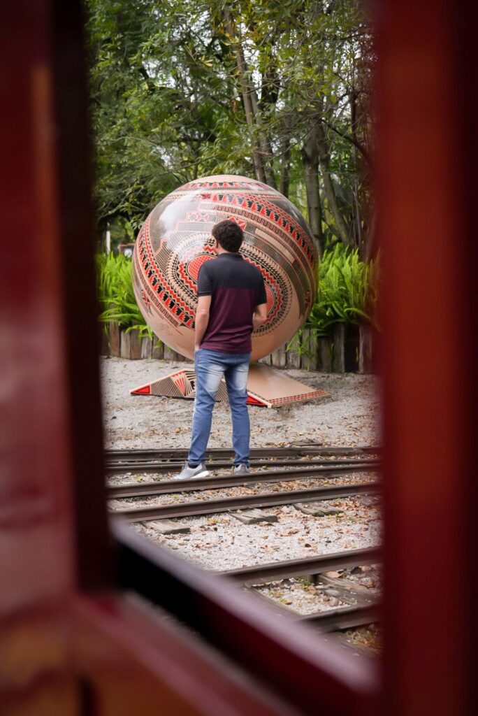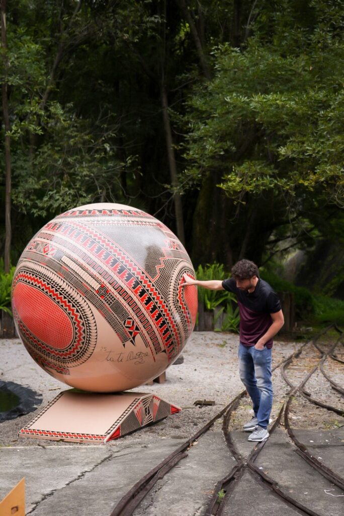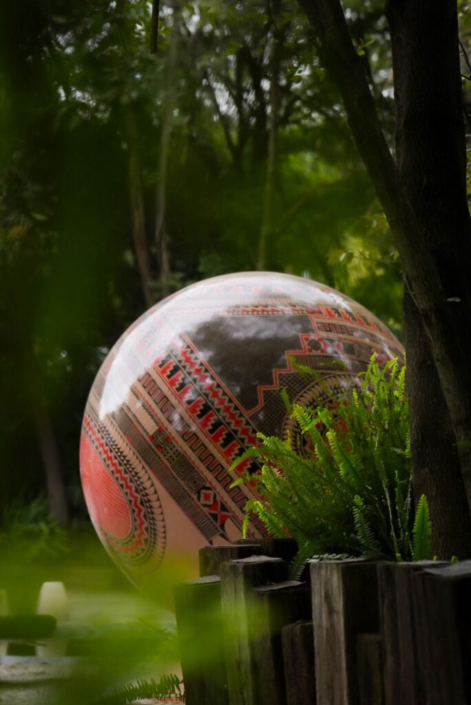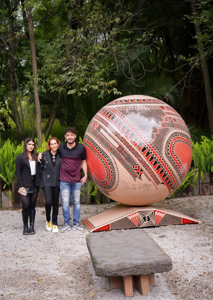 Las esferas, elaboradas con fibra de vidrio y resina de poliéster ortoftálica, alcanzan los dos metros de diámetro y pesan cerca de 80 kilogramos. Su tamaño monumental contrasta con la delicadeza de sus formas, donde el diseño contemporáneo dialoga con los símbolos prehispánicos de Paquimé, el gran centro cultural del norte mexicano.