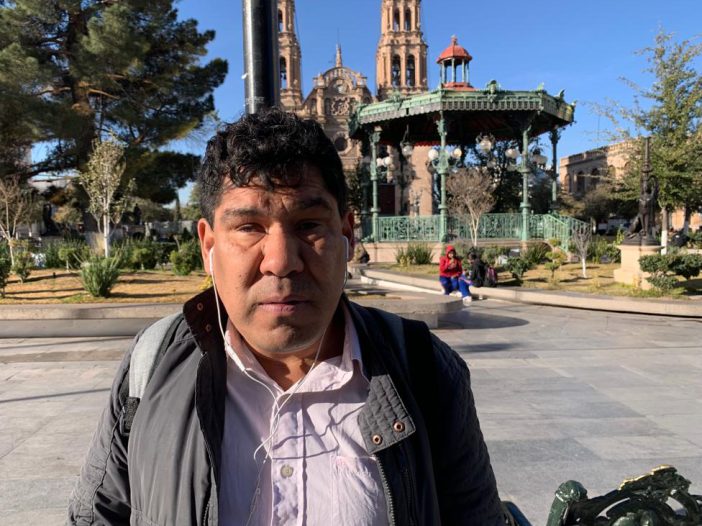 Teniendo como fondo la Catedral Metropolitana de Chihuahua, Pedro Ontiveros habla con la elocuencia que le han dado horas y horas de locución en estaciones de corte cultural y regional.